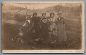 Postcard RPPC United States c1912 Group Photo with Dog Ma...