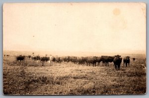 Postcard RPPC United States c1911 Men with Herd of Cattle Cows