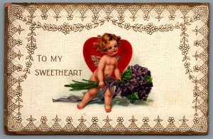 Postcard c1917 Valentines To My Sweetheart Embossed Angel...