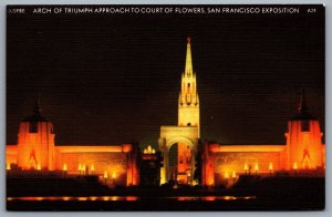 Postcard San Francisco CA c1940 Arch of Triumph Court of Flowers Night View Expo