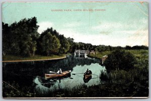 Postcard Owen Sound Ontario c1910 Queens Park Men Canoein...