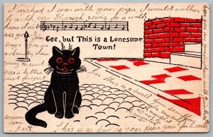 Postcard c1907 Un Signed Artist R. L. Wells Black Lonesome Cat Musical Notes