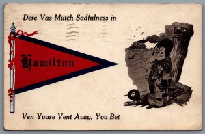 Postcard Hamilton Ontario c1912 Pennant Flag Dutch Kid Dere Vas Mutch Sadfulnes