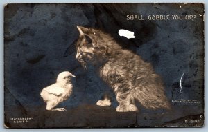 Postcard RPPC c1906 Rotograph Series Shall I Gobble You Up? Kitten and Chick