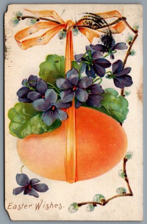 Postcard Easter c1907 Tucks Easter Wishes Pussy Willow Violets Egg Orb Cancel