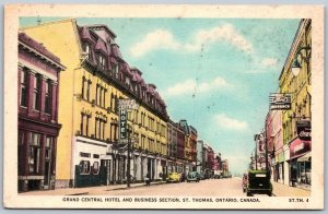Postcard St. Thomas Ontario c1930s Grand Central Hotel and Business Section A