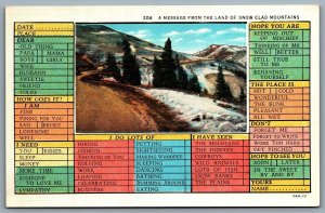 Postcard c1930 Message From The Land of Snow Clad Mountains Message Gram Unused