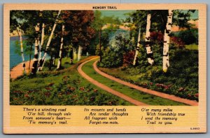 Postcard c1930s Memory Trail Scenic Nature View Poem Winding Road Linen Unused