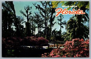 Postcard c1950s Hello From Florida Azaleas Blooming Cypress Gardens Unused