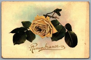 Postcard c1910 Remembrance Yellow Rose On Vine Flower Art...