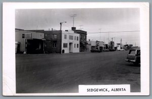 Postcard RPPC c1971 Sedgwick Alberta Street View Old Cars...