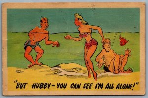 Postcard c1953 Comic Humor “But Hubby - You Can See I’m All Alone” Cheating A/S