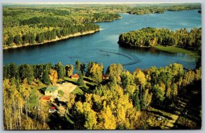 Postcard Kenora Ontario c1960s Lakeshore Cabins Aerial View Black Sturgeon Lake