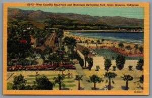 Postcard Santa Barbara CA c1940 West Cabrillo Boulevard & Munical Swimming Pool