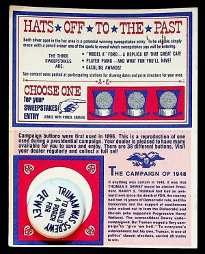 VINTAGE 1972 American Oil Company Sweepstakes Pinback Button Thomas E. Dewey