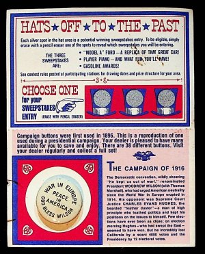 VINTAGE 1972 American Oil Company Sweepstakes Pinback Button Woodrow Wilson