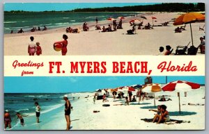 Postcard Fort Myers FL c1960 Greetings from Ft. Myers Beach Florida Dual View