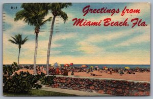 Postcard Miami FL c1951 Greetings from Miami Beach Florida Beach View Linen