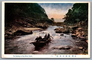 Postcard Kyoto Japan c1920s Boating on the Hozu River Rapids Downstream