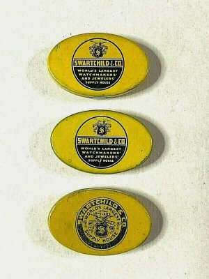 VINTAGE 1930s 3x Swartchild & Co Watchmaker and Jewelers Supply House Tins
