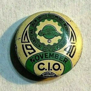 VINTAGE 1940 International Union United Automobile Workers of America - Pinback