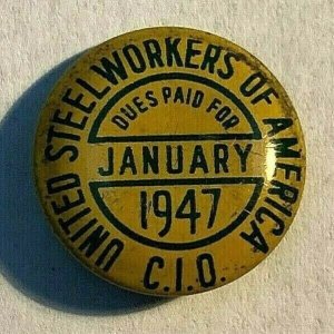 VINTAGE 1947 United Steelworkers of America Dues Paid For CIO Jan USW - Pinback