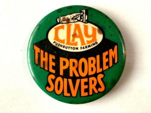 VINTAGE 1970s Clay Pushbutton Farming - The Problem Solvers Pinback Button