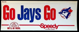 VINTAGE 1970s Toronto Blue Jays Go Jays Go Speedy Muffler Sticker Decal 8” x 3"