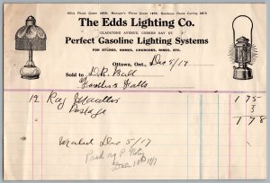 1917 Ottawa Ontario The Edds Lighting Co. Perfect Gasoline Lighting Systems Bill