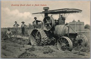 Postcard North Dakota c1910s Breaking Brush Land Steam Tr...