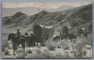 Arcade Card 1950s Covered Wagon Train Cowboys on Horses W...