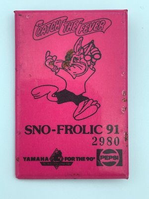 VINTAGE 1991 Petawawa Ontario Sno-Frolic - Pepsi - Yamaha - PINK Pinback Button