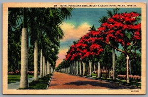 Postcard Florida c1936 Royal Poinciana Tree Amidst Majestic Royal Palms Scenic