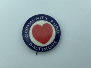 VINTAGE 19?? Baltimore Maryland Community Fund - Heart - Pinback Button
