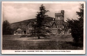 Postcard Biggar Scotland Winston Lodge YMCA Showing Tinto Hill RPPC