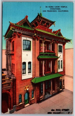 Postcard San Francisco CA Kong Chow Temple Chinatown Linen B
