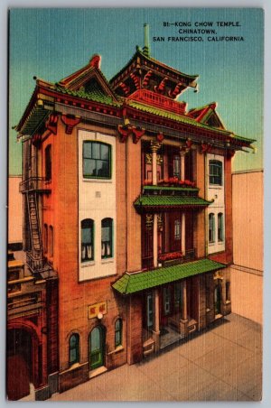Postcard San Francisco CA Kong Chow Temple Chinatown Linen B