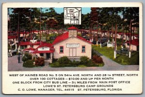 Postcard St Petersburg FL c1920s Lowe's Camp Cottages Camps Advertisement