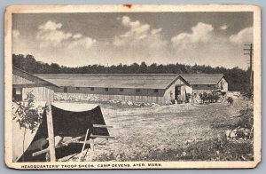 Postcard Ayer MA c1918 Camp Devens Headquarters Troop She...