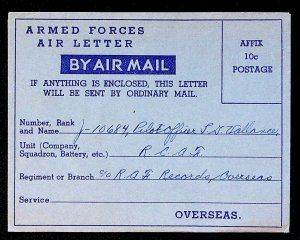 c1940s Canadian Armed Forces Air Letter Pilot Officer Lloyd Vallance RCAF