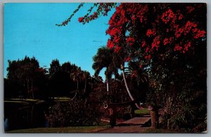 Postcard Sarasota FL 1971 Orange Flame Vine Scarlet Bougainvillia Jungle Gardens