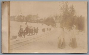 Postcard RPPC c1910 Kenmore ONT Tobogan Hill Kids Riding Down Hill Winter Scene