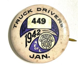 VINTAGE 1942 January Truck Drivers Union IB of TCS & H of A Local 449 Pinback