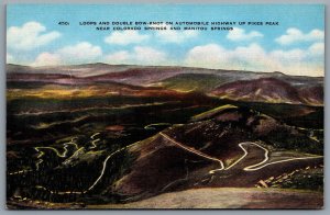 Postcard Pikes Peak CO c1930s Loops And Double Bow Knot Automobile Highway