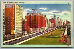 Postcard Chicago IL c1940s New Michigan Avenue Standard O...