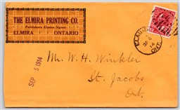 Cover 1914 Canada Elmira Ontario Printing Company to St. Jacobs with Letter