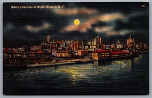 Postcard Albany NY c1940s Albany Skyline At Night Submari...