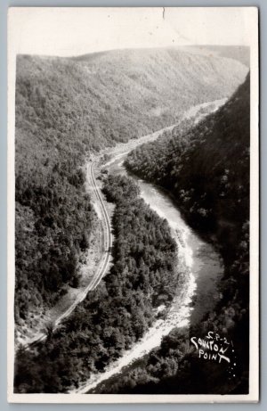 Postcard Colton Point State Park PA 1950s River View Pine Creek Railroad Tracks