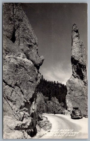 Postcard RPPC c1940s Black Hills SD Scene Along Needles Highway Old Car