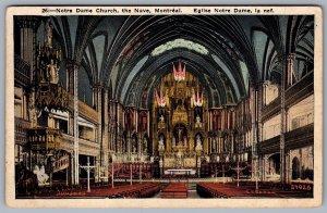 Postcard Montreal Quebec c1927 Notre Dame Church The Nave...
